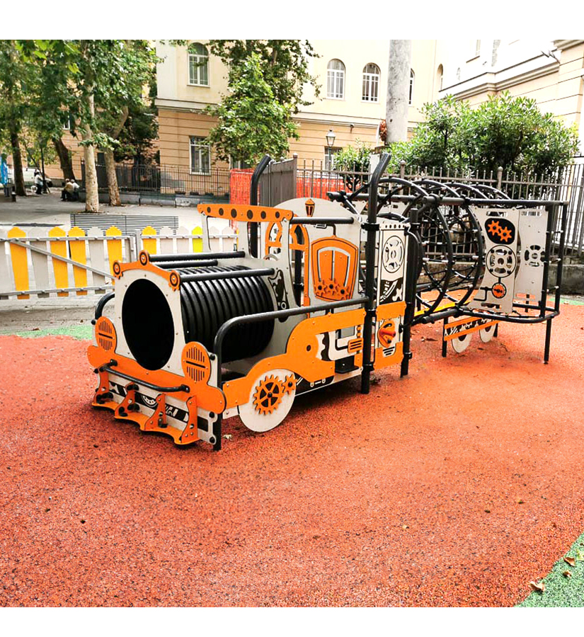 In questo caso il cliente commissiona la realizzazione di varie aree tematiche, ognuna con strutture ludiche dedicate e che ben si conformano all’ambiente circostante. Ove la norma lo prevede è stata realizzata un’area antitrauma in erba sintetica con tappetino di assorbimento d’urto, scelta che permette la creazione di un’area che si integra con le aree esterne, senza stonare. Le strutture sono scelte in base alla fruibilità ed alla fascia di età di utilizzo: strutture più grandi e complesse nei parchi pubblici, giochi bassi ed incentrati al gioco di fantasia per le aree scolastiche. In certe aree l’installazione di strutture più piccole e contenute è stata dettata da necessità di contenere lo sviluppo nello spazio pur mantenendo il fattore ludico. Dove lo spazio lo permette, invece, sono state installate strutture a più ampio respiro come ad esempio l’aereo con arrampicate e scivoli o le strutture a forma di mostro.