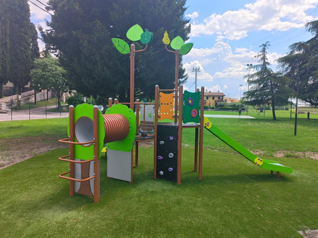 La commessa realizzata presso il Comune di Lazise prevede la riqualificazione di svariate aree ludiche all’interno di parchi pubblici e scolastici della città.
